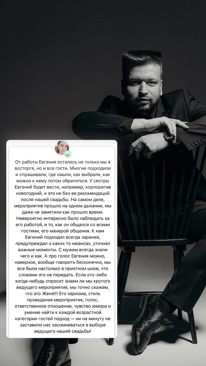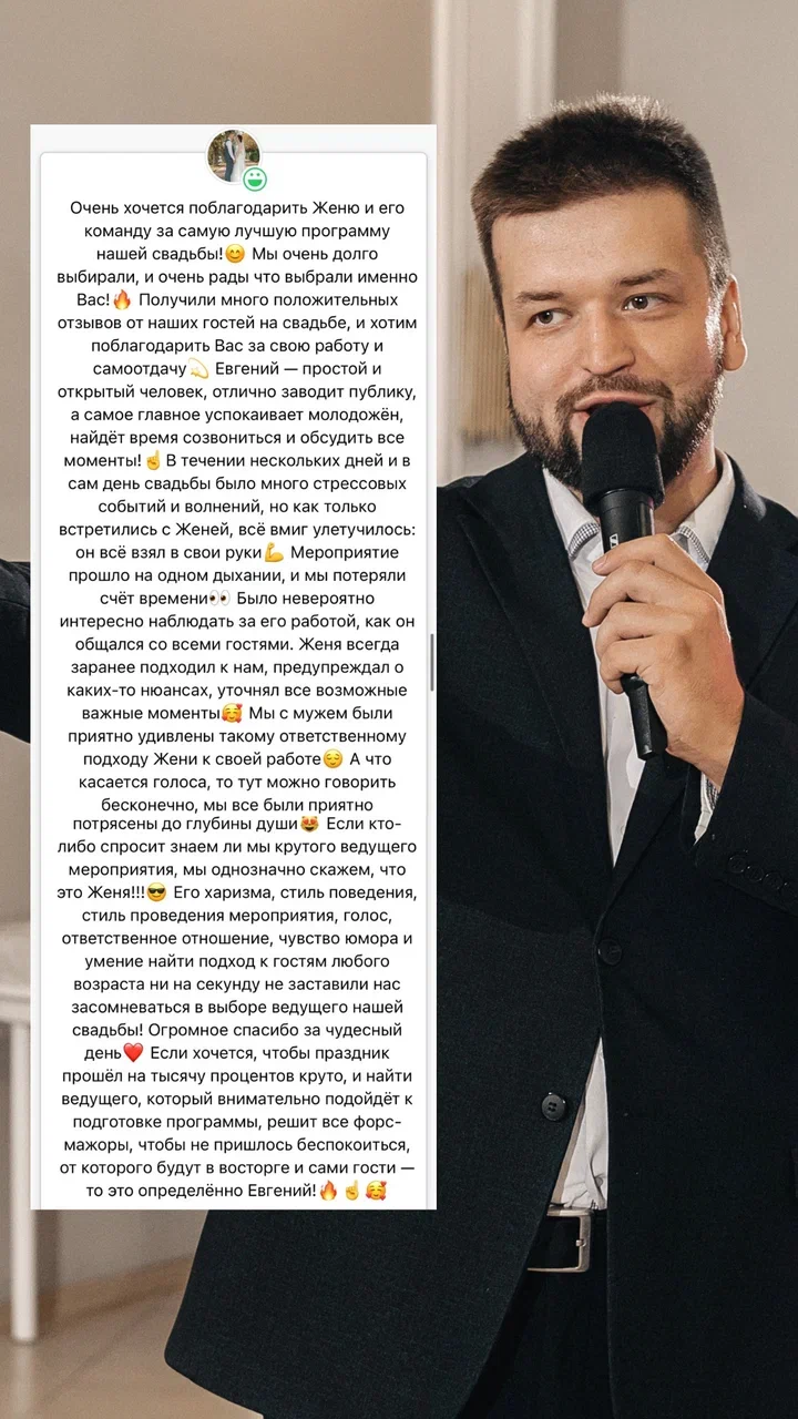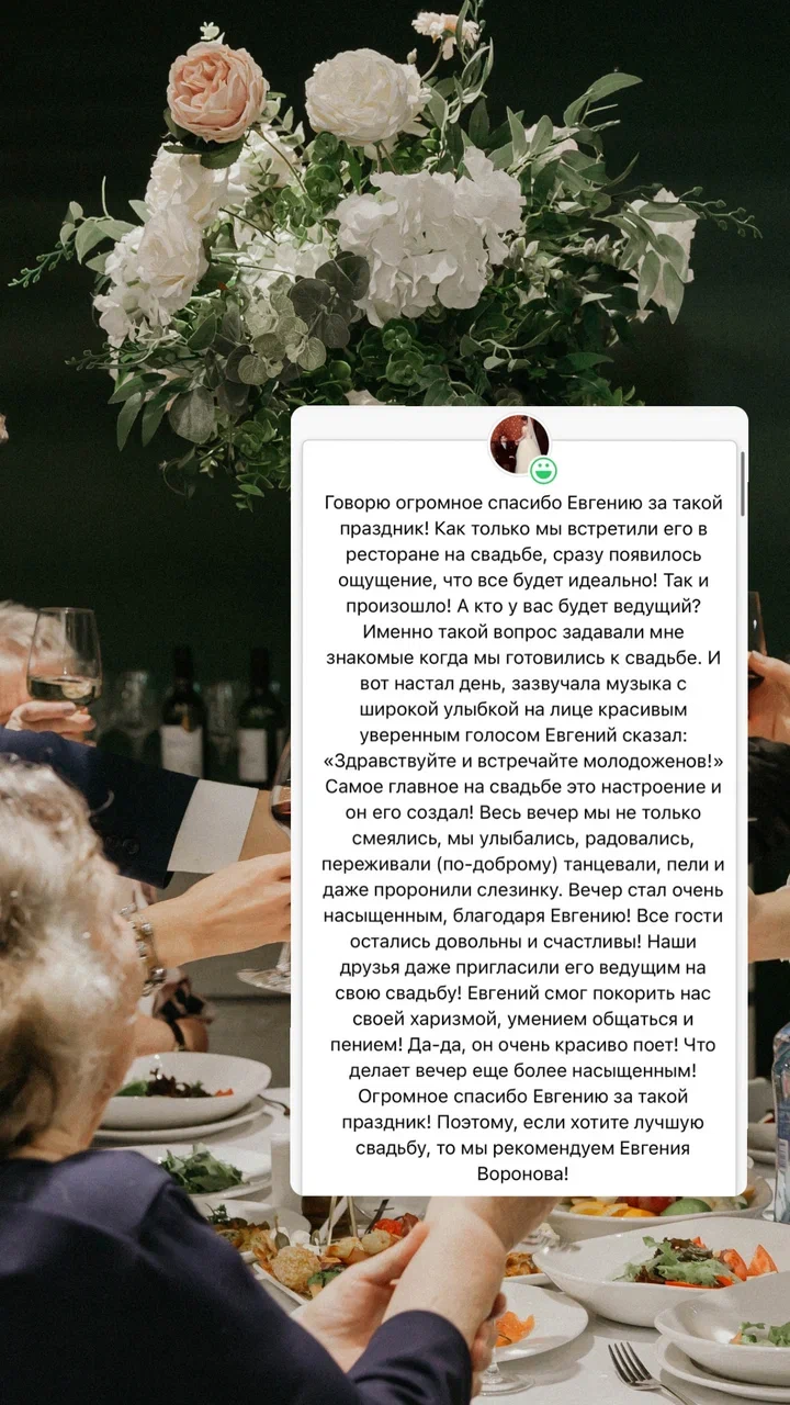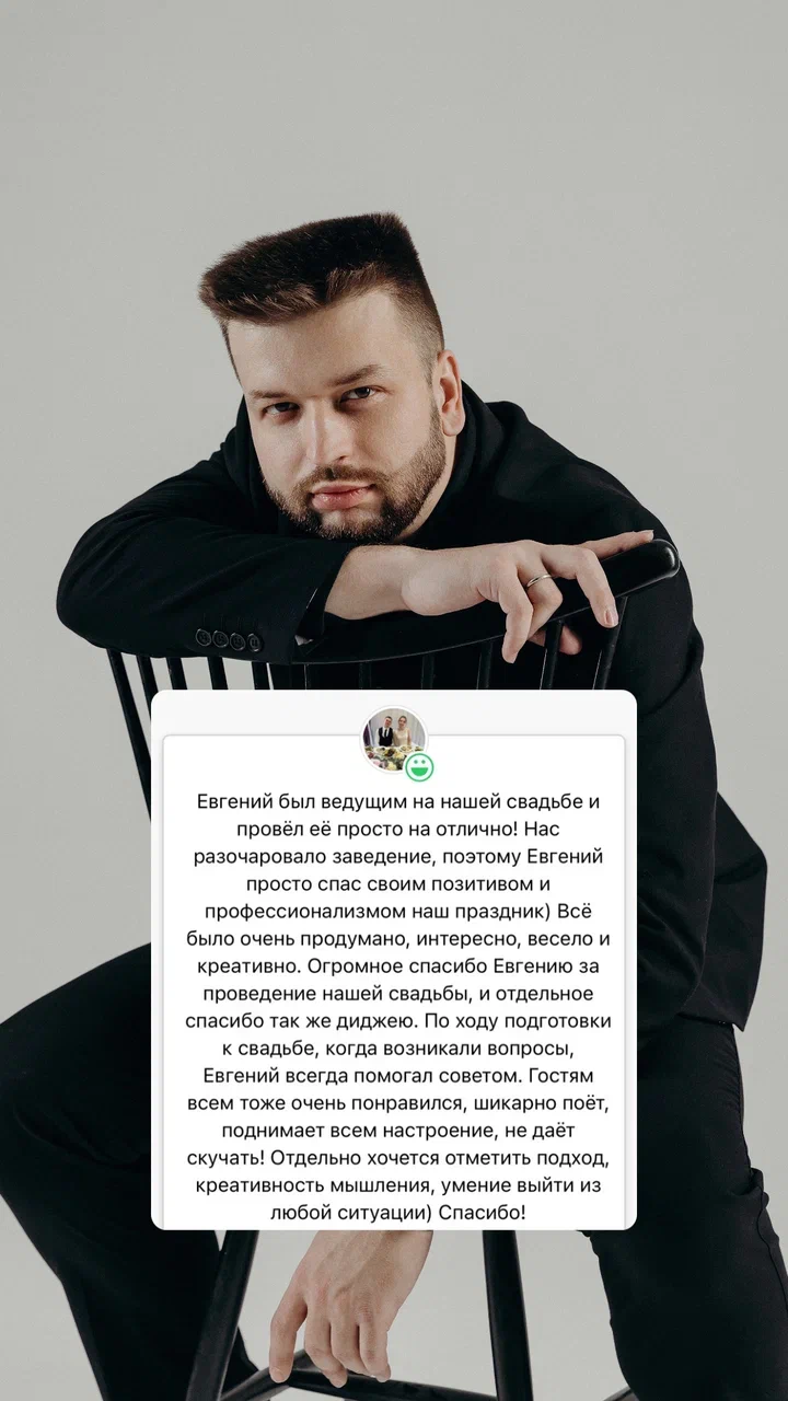 и я свадебный ведущий уже более 7 лет. В моей практике — создание уникальных и незабываемых свадеб, где каждый момент продуман до мельчайших деталей.