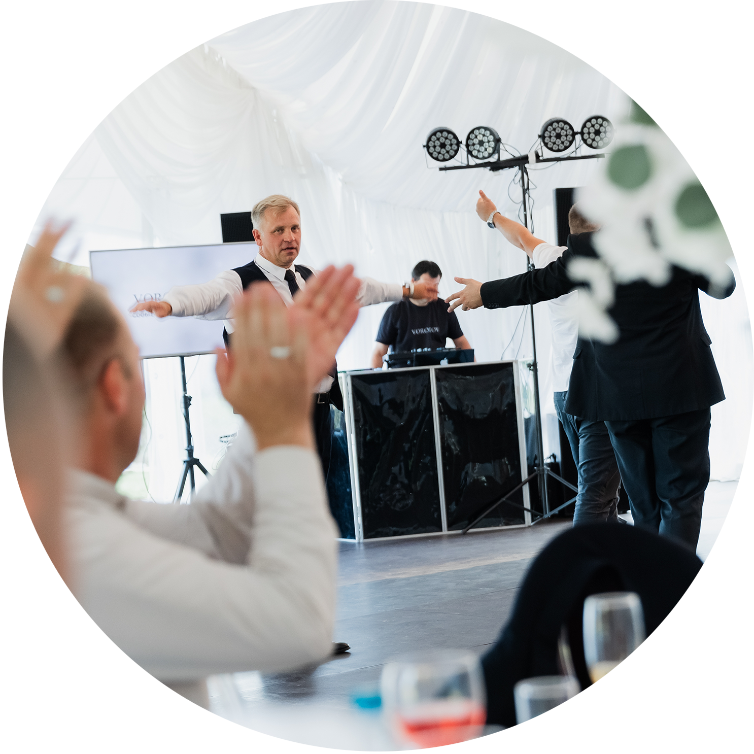 Так же в моей команде есть диджей с которым мы работаем большинство мероприятий и комплект звукового и светового оборудования, если требуется