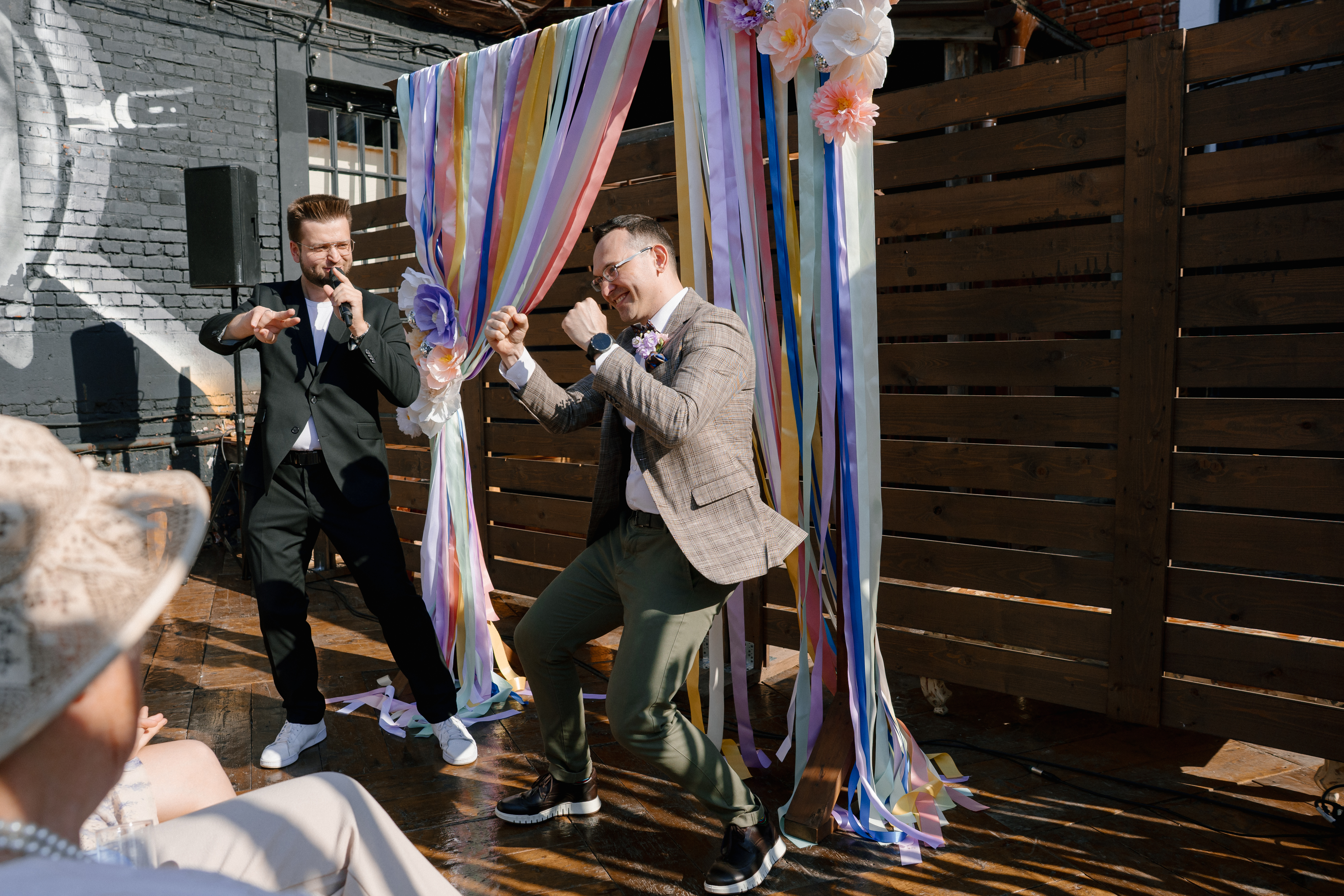 | Это всегда индивидуальный подход с набором интерактивов, традиций и импровизацией. Просто посмотрите один из выпусков свадебного подкаста "Борька", автором которого я являюсь. Этот выпуск - битва идей на свадьбу. 10 шт. Смотрите весь выпуск целиком или используйте тайм-коды для удобства |